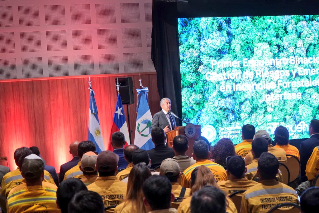 El gobernador Rolando Figueroa participó del Primer Encuentro Binacional de Gestión de Riesgos y Emergencias en Incendios Forestales y de Interfase , un evento organizado por la Secretaría de Emergencias y Gestión de Riesgos.