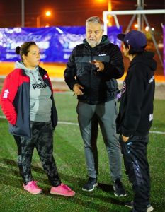 Ahora también las canchas de fútbol y hockey del barrio Cuenca XVI también están iluminadas “y con eso le ganamos horas a la calle para que los chicos estén contenidos a través del deporte que enseña valores”.