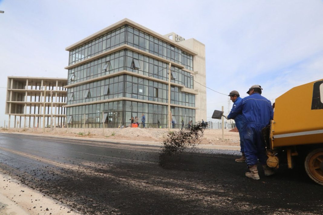 Mientras se observa cómo se concretan los últimos detalles de la nave 2 del Polo Tecnológico para su inauguración el 23 de octubre, la Municipalidad de Neuquén avanza con el asfalto en sus inmediaciones.