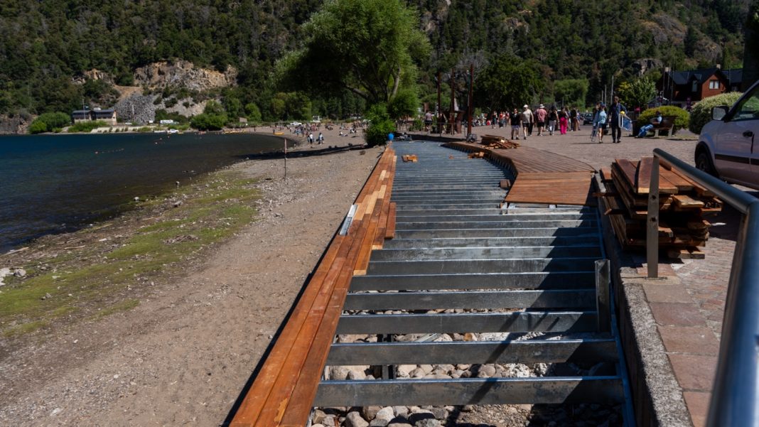Con el inicio de la colocación de madera, avanzan los trabajos de reconstrucción del deck de la Costanera del lago Lacar, como parte del plan de mejoramiento del paseo costero que desde noviembre lleva adelante el Municipio.