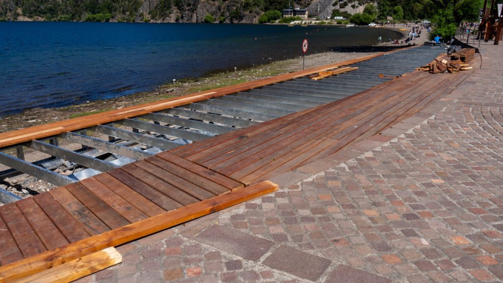 Comenzó la colocación de maderas en el nuevo deck de la Costanera del lago Lacar