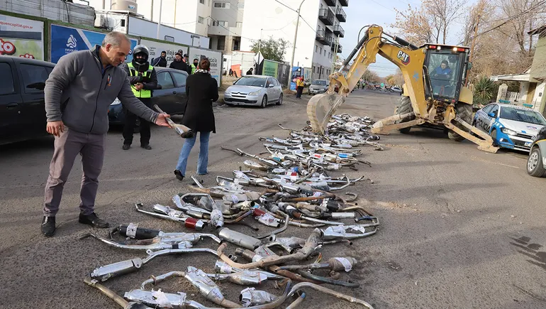 La ciudad de Neuquén concretó este jueves la destrucción de 260 caños de escape ruidosos que habían sido secuestrados durante operativos de tránsito y seguridad vial realizados en los últimos meses.