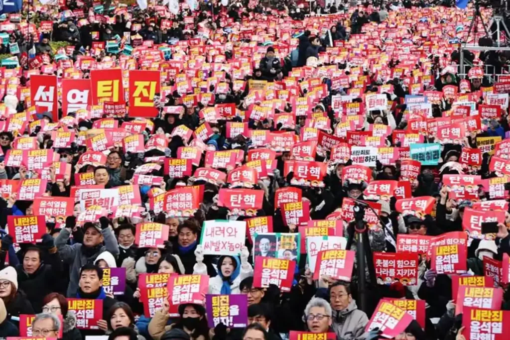 En Seúl, cerca de 208.000 personas se congregaron frente a la Asamblea Nacional, según datos de la Policía, aunque los organizadores de la protesta elevaron esa cifra hasta los “dos millones“.