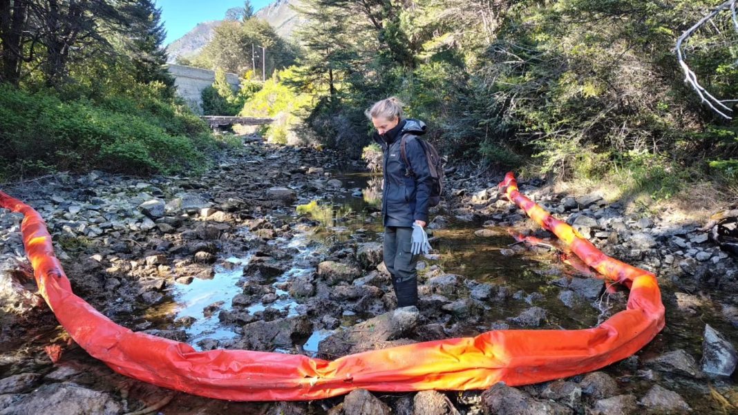 Aunque el siniestro no generó un vuelco de gran magnitud, técnicos y guardaparques detectaron una pérdida constante de material desde el automóvil. La situación activó una intervención inmediata para proteger el curso de agua.