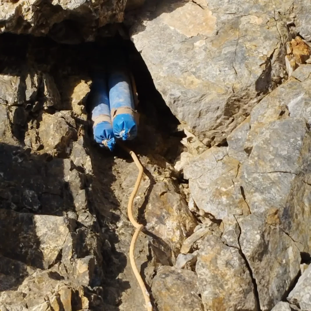 Se realizó rastrillaje sobre la banquina y borde de la montaña donde en horas de la tarde junto a a personal de bomberos y Guardaparques Nacional, lograron ubicar los presuntos explosivos, en el sector de montaña rocosa, exactamente a la altura del Km 2080 de Ruta Nacional Nro. 40.