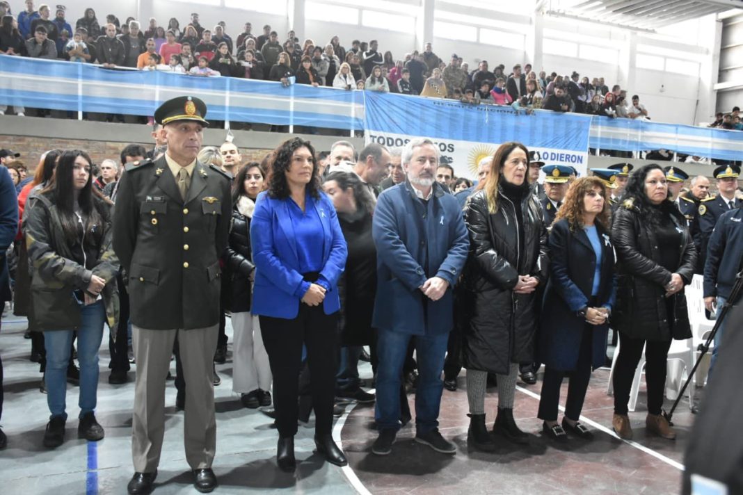 María Pasqualini, secretaria de Jefatura de Gabinete, fue quien presidió el acto, ante la ausencia del intendente Mariano Gaido, quien junto a los demás funcionarios municipales había invitado a todos los vecinos sumarse a este acto que tiene como fin celebrar un nuevo aniversario de la Revolución de Mayo.