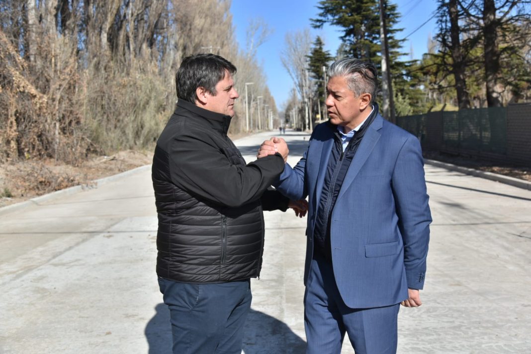 El intendente Mariano Gaido y el gobernador Rolando Figueroa recorrieron este mediodía el avance de la obra de asfalto de la calle Obrero Argentino entre Richieri y El Chocon. Un proyecto que avanza en el barrio Confluencia, y que consolida la conectividad de ese sector de la ciudad con el río Limay y su paseo costero.