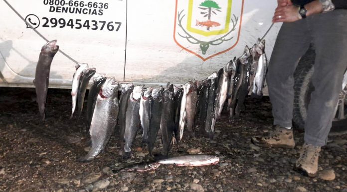 En el procedimiento se decomisaron un total de 33 salmónidos, y se secuestraron elementos de pesca.