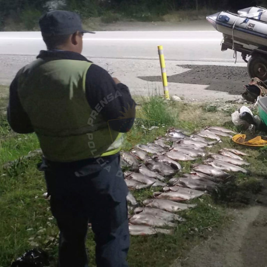 En un operativo de control llevado a cabo en el Puesto Muelle de Piedra, sobre la Ruta Nacional 40 (km 2105), personal de la Comisaría 28° de Villa La Angostura decomisó 46 truchas arco iris, capturadas en infracción a la normativa vigente.