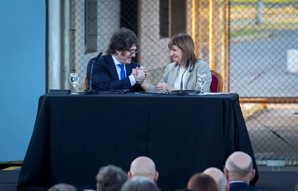 El presidente Javier Milei encabezó este jueves en el Complejo Penitenciario Federal N° 1 de Ezeiza la presentación del proyecto del nuevo Código Penal, denominado “Tolerancia cero con el crimen”. Lo acompañó la ministra de Seguridad, Patricia Bullrich, junto a otros miembros del gabinete.