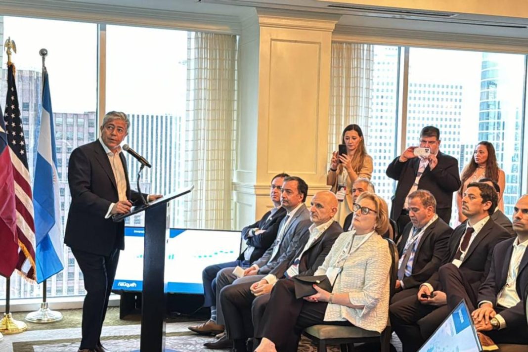 “Vamos a brindarles a las pymes neuquinas una rebaja de regalías para que puedan presentarse en forma mucho más competitiva en las diferentes UTE”, dijo Figueroa durante una exposición que brindó en la sede del Club del Petróleo en Houston.