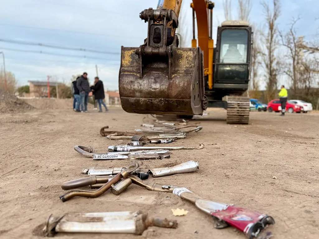 Este jueves, el municipio de Cipolletti llevó adelante un operativo para destruir más de 100 caños de escape libre incautados en distintos controles vehiculares realizados durante el año junto con la Policía provincial. El procedimiento se realizó en el predio del Consorcio de Regantes, con maquinaria prestada por la entidad.