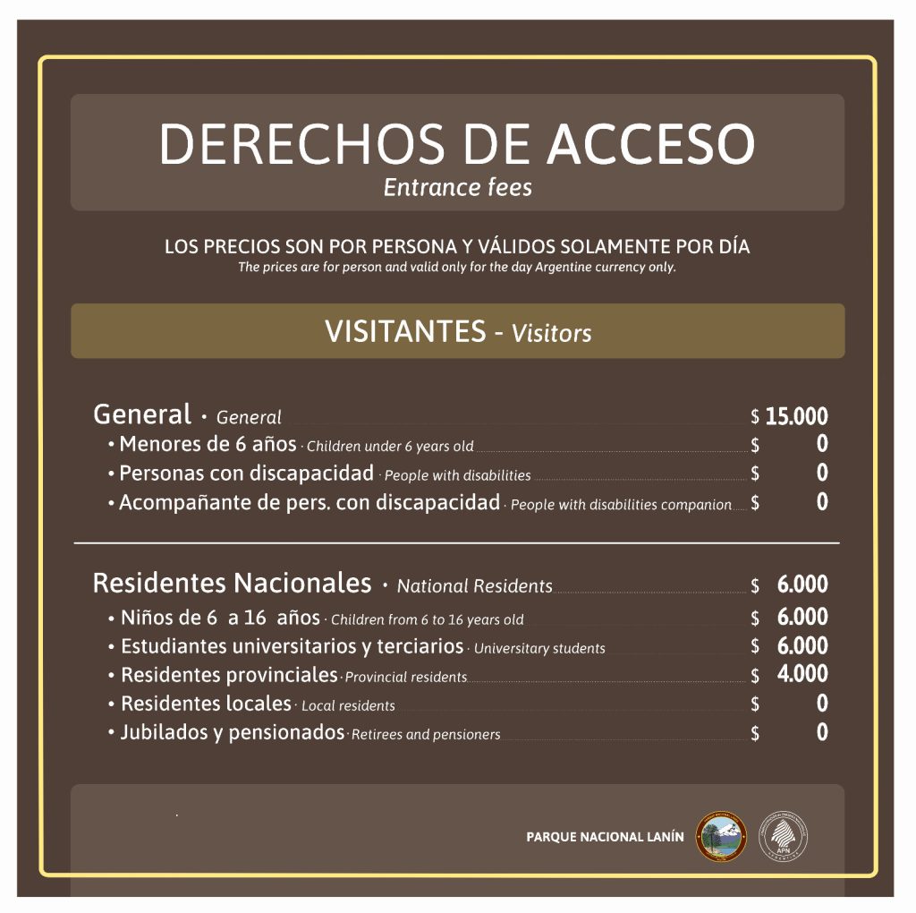 Se actualizó el tarifario vigente para cobros de acceso del Parque Nacional Lanín