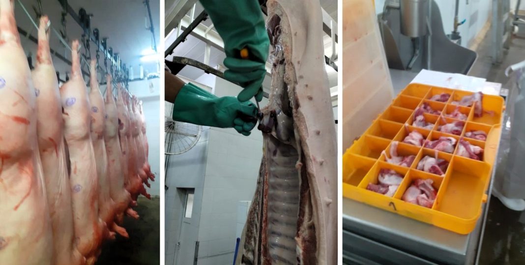 El equipo técnico profesional del Senasa en la norpatagonia, desarrolló el control sanitario antes y después de la faena de cada animal, incluyendo la revisión documental del ingreso de los mismos, la verificación de su estado físico y la toma de muestras para descartar enfermedades tales como la triquinosis.