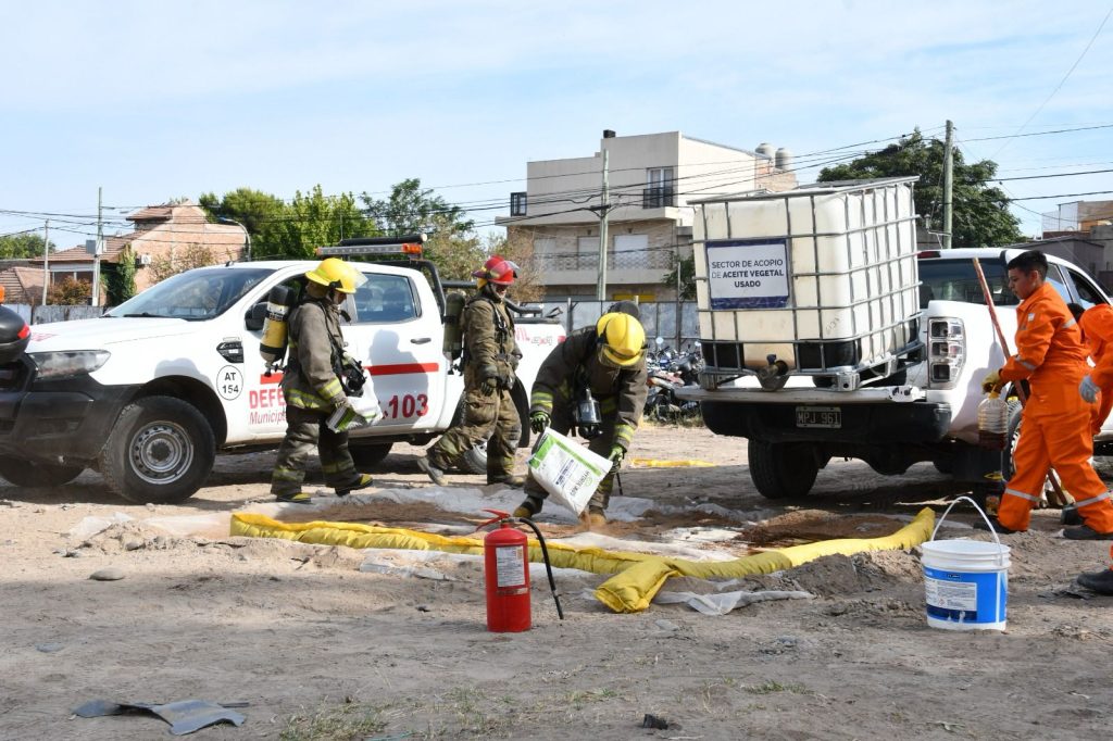 Se realizó esta mañana un simulacro de derrame de hidrocarburos en el predio municipal ubicado en calle San Luis 650, con el objetivo de probar un nuevo absorbente y articular las diferentes áreas operativas que deben actuar en caso de algún evento real de este tipo.