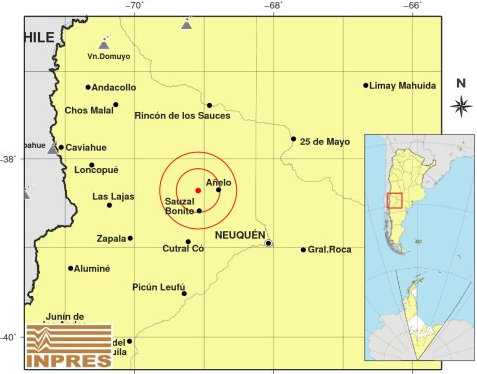 Según el informe que trascendió, el sismo ocurrió a las 4:17. El epicentro fue 98 kilómetros al noroeste de Neuquén, 105 kilómetros al noreste de Zapala y 138 kilómetros al suroeste de 25 de Mayo.