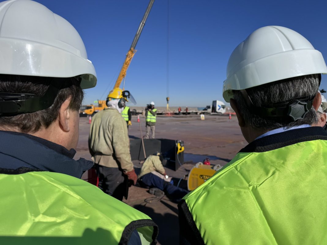 En Allen se alcanzó un récord nacional con 155 soldaduras en un solo día y tres kilómetros de cañería montados en una jornada. En paralelo, ya se encuentra en marcha el segundo tramo, que conecta Chelforó con Punta Colorada, y se está construyendo un tanque de 120.000 m³ de almacenamiento en la terminal portuaria.