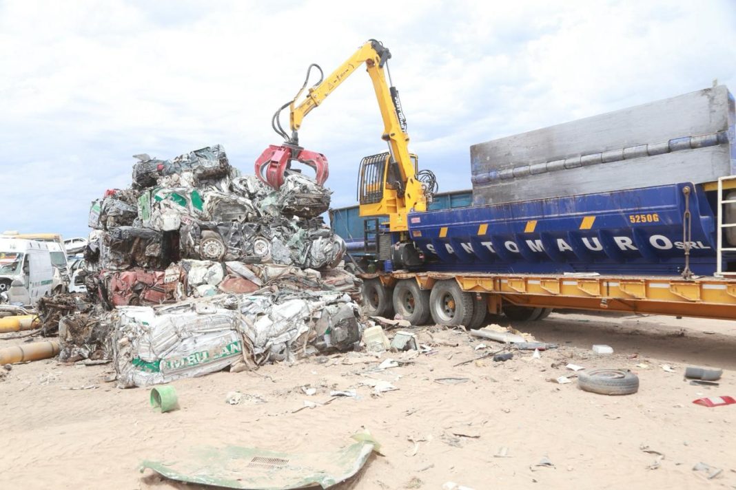 La empresa compactadora ganadora de la licitación convocada oportunamente por la Municipalidad lo primero que hace es sacar las baterías y otros elementos que contengan aceites y fluidos de los motores. A este proceso se lo llama “descontaminación vehicular”. Recién entonces procede a su compactación transformándolos en grandes cubos de metal.